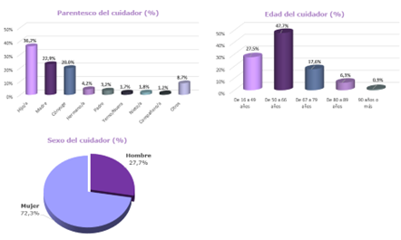 Estos datos confirman la dimensión de género en la longevidad y en el acceso a los cuidados, y ponen de manifiesto que la dependencia tiene un marcado rostro femenino, ya que además, las personas cuidadoras no profesionales son principalmente mujeres (72,3%), de las cuales más del 72% tienen más de 50 años, que cuidan principalmente a sus madres y padres. En términos estadísticos, el SAAD considera persona cuidadora no profesional a aquella vinculada a una prestación económica de cuidado en el entorno familiar.