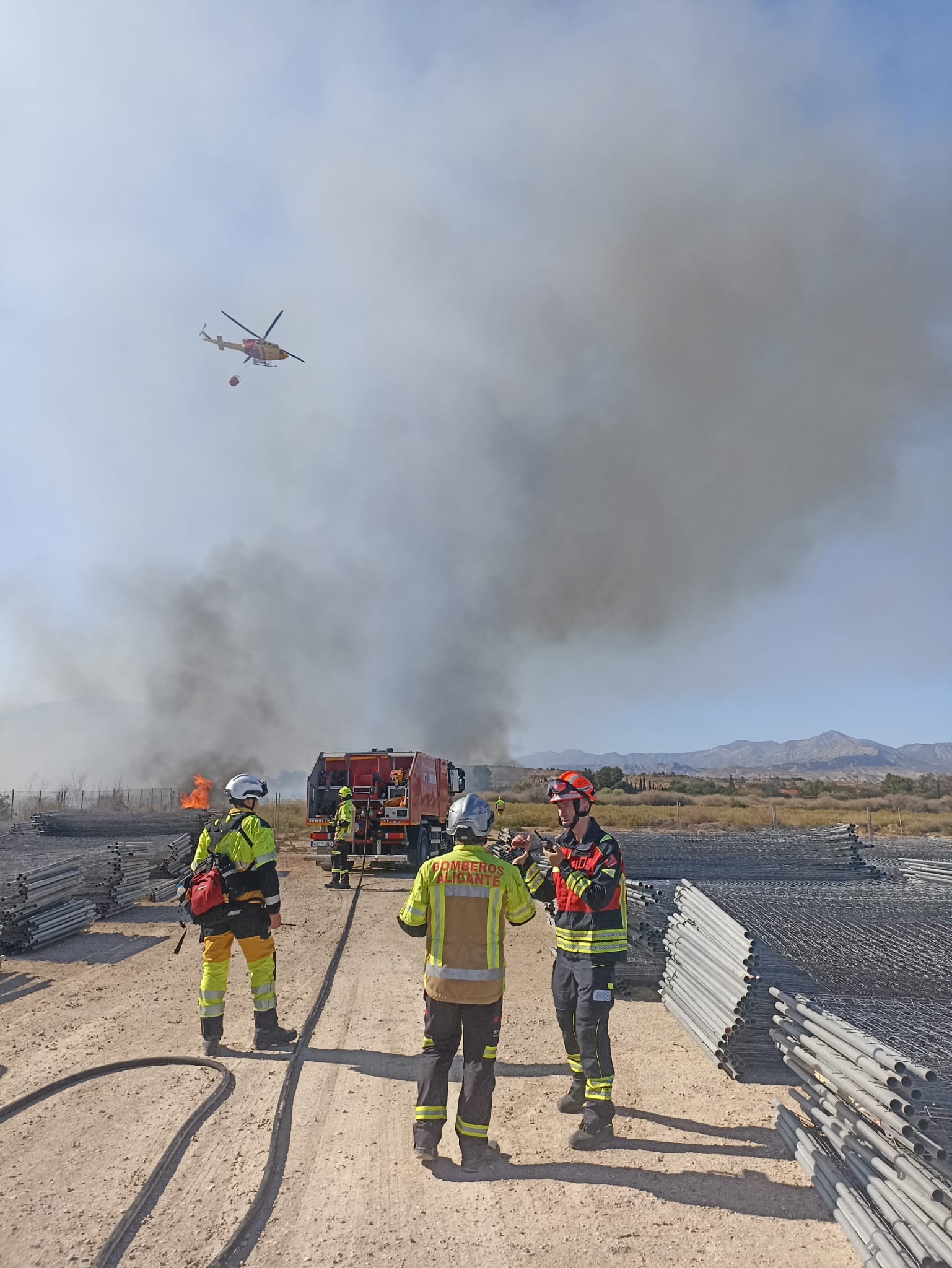 En las tareas de extinción también han participado ocho agentes de la Policía Local, dos brigadas forestales aerotransportadas y otras dos del Consorcio Provincial de Bomberos del Parque de San Vicente del Raspeig con dos autobombas y tres medios aéreos, dos aviones de ala fija y un helicóptero.